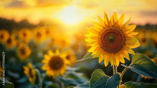 © Yuli1726, Obraz premium Sunflowers at sunset