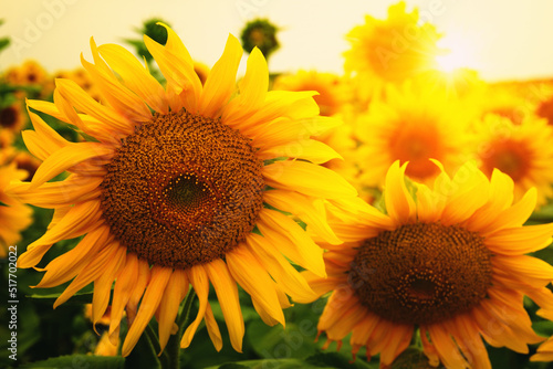 © Alekss, Obraz premium Sunflowers closeup on sunlight