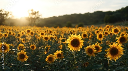 Obraz premium Sunflowers field at sunset