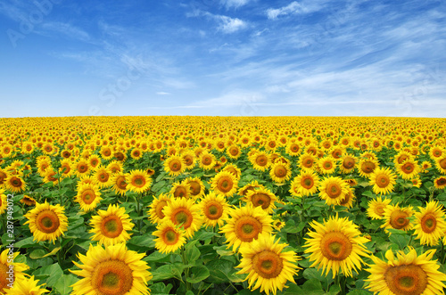 © Alekss, Obraz premium Sunflowers field on sky