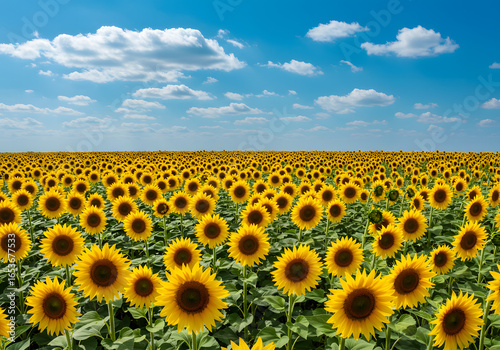 © Ramdhaniyah, Fototapeta premium Sunflowers field under sunny sky