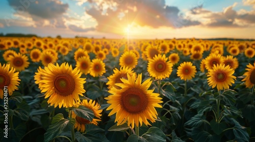 © olegganko, Obraz premium Sunflowers Field With Rainbow