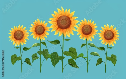 Obraz premium Sunflowers flat design, front view, floral theme, animation, Complementary...
