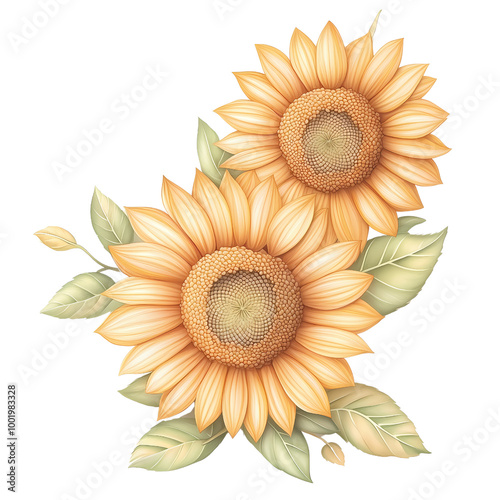 © Linlyart, Fototapeta premium sunflowers Frame watercolor on Transparent background