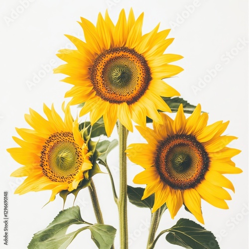 © Aklima, Obraz premium Sunflowers in full bloom amidst a white background exude vibrant cheerfulness and natural beauty