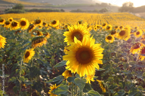 © UMIT, Fototapeta premium sunflowers in the field in may