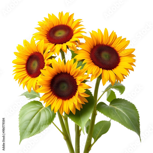 © Ajay, Obraz premium Sunflowers isolated on transparent background with clipping path. Front view.