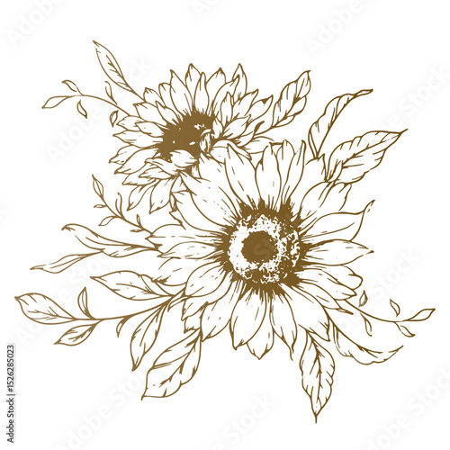 © Xenia, Fototapeta premium Sunflowers Line Drawing. Outline Sunflowers illustration. Hand Drawn Sunflowers Silhouette. Monochrome Floral Line Art. Ink Sunflowers Drawing for packaging, labels.