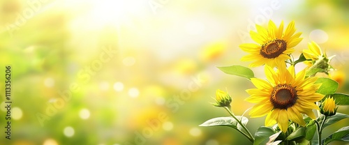 Fototapeta premium Sunflowers on a green background with copy space for text, perfect for a...