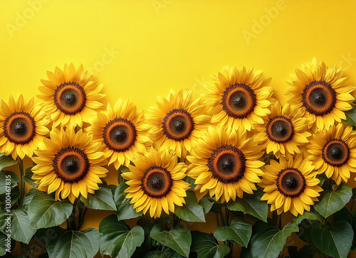 Naklejka premium Sunflowers on a yellow background.