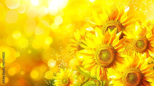 © VISUAL BACKGROUND, Fototapeta premium Sunflowers on a yellow background.