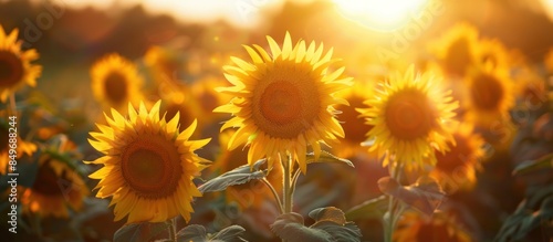© FryArt, Fototapeta premium Sunflowers swaying in the golden hour