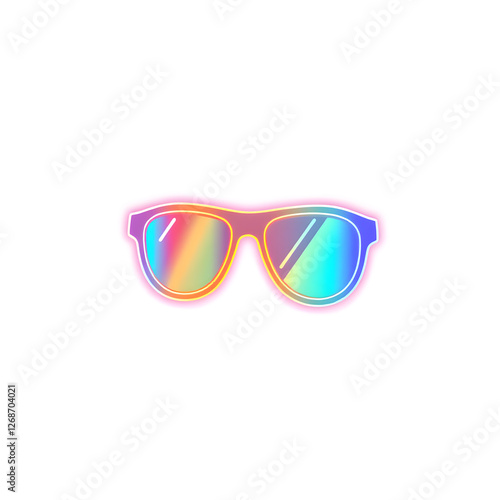 © Tark, Fototapeta premium Sunglasses holographic 3D icon. neon symbol vector illustration isolated on white background. Generative AI