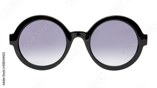 © Dzha, Fototapeta premium Sunglasses isolated on white background. Mockup sunglasses front view closeup design for applying on a portrait. Round shape