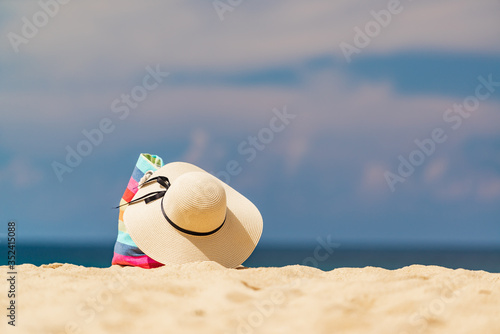© Netfalls, Obraz premium Sunhat and bag at the beach