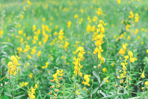 Fototapeta premium sunhemp flower field(crotalaria juncea ,Indian hemp or madras hemp) with solf pastel tone (selective focus)
