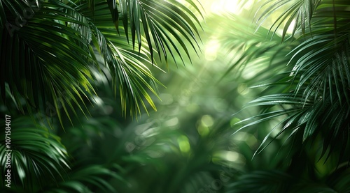 © urwa, Fototapeta premium Sunlight and Palm Leaves Shadow on a Green Backdrop.