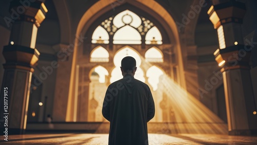 © demzp, Fototapeta premium Sunlight beams through an ornate mosque during a tranquil moment of reflection