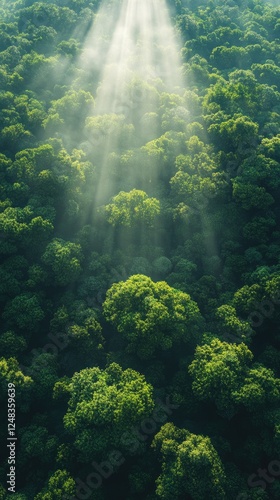 Obraz premium Sunlight Beams Through Lush Forest Canopy