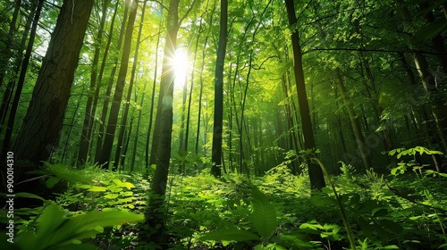 Obraz premium Sunlight Breaking Through Dense Forest Canopy