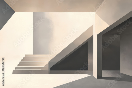© Alberto Gonzalez , Fototapeta premium Sunlight casting geometric shadows on a concrete building exterior
