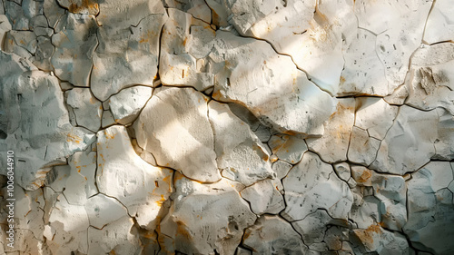 © aviavlad, Obraz premium Sunlight casts delicate shadows on a textured surface of cracked earth and clay