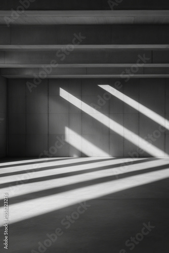Obraz premium Sunlight creating striking patterns on a minimalist interior space during midday