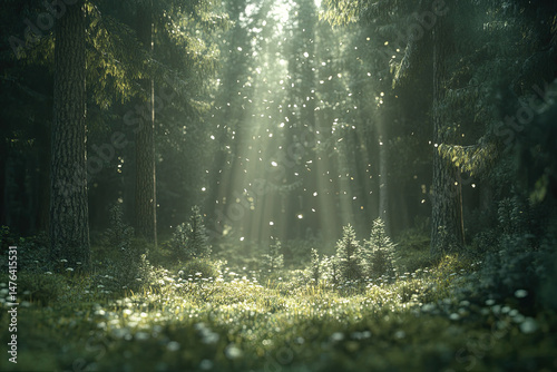 © Nastassia, Obraz premium Sunlight Dancing Through Pine Trees in a Peaceful Forest