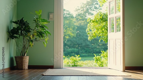 Fototapeta premium Sunlight Drenched Room Opening To Garden