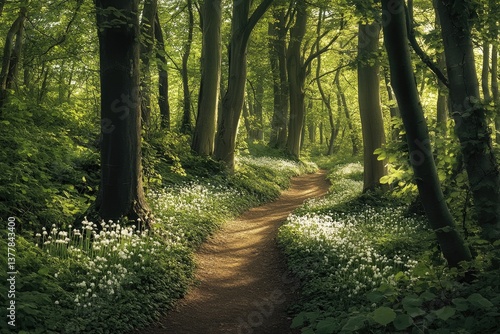 Fototapeta premium Sunlight-drenched woodland path
