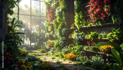 Obraz premium Sunlight-filled botanical garden