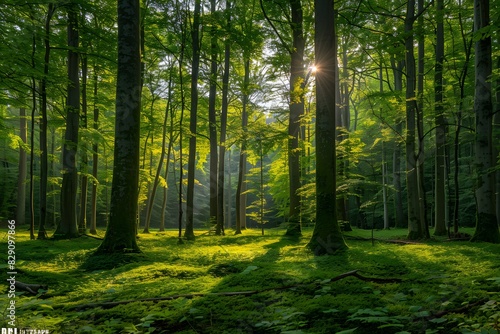 Obraz premium Sunlight filtered through green trees