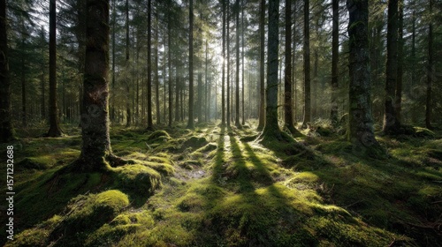 © Erisna Yolanda, Obraz premium Sunlight filtering through a dense forest