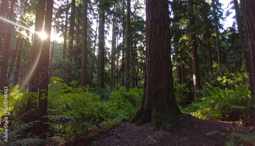 © dwiki, Obraz premium Sunlight filtering through a dense forest (1)