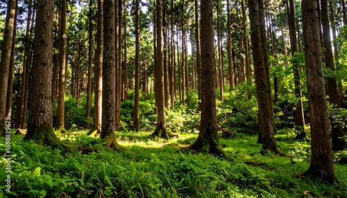 © ana, Obraz premium Sunlight filtering through a dense forest (3)