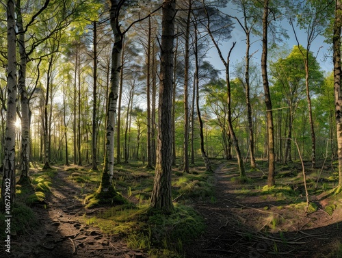 © boler, Obraz premium Sunlight Filtering Through a Dense Forest Canopy