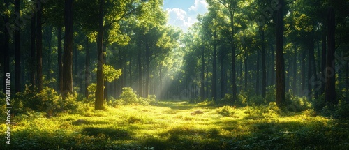 Obraz premium Sunlight Filtering Through a Dense Forest Canopy
