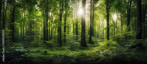 Obraz premium Sunlight Filtering Through a Lush Forest