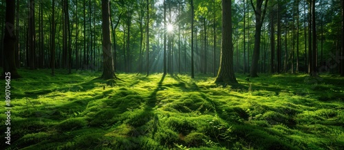 Obraz premium Sunlight Filtering Through a Lush Forest