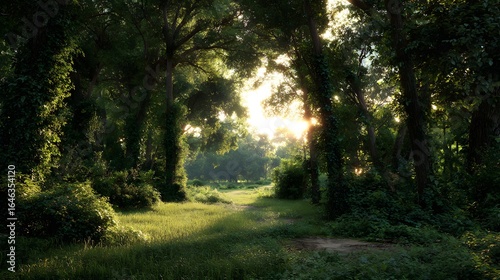 © irawan, Obraz premium Sunlight filtering through a lush forest path.