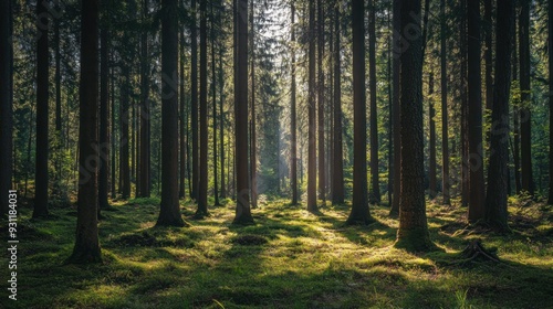 Fototapeta premium Sunlight Filtering Through Dense Forest