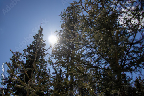 Obraz premium Sunlight Filtering Through Forest Canopy