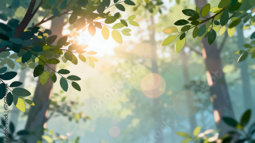 Obraz premium Sunlight filtering through forest leaves