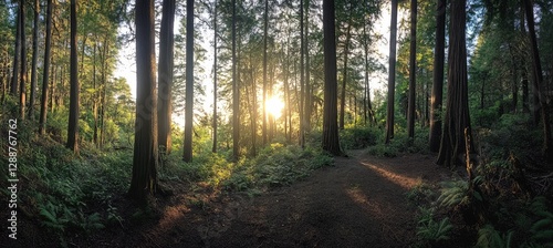 © photopixelstudio, Obraz premium Sunlight filtering through forest trees