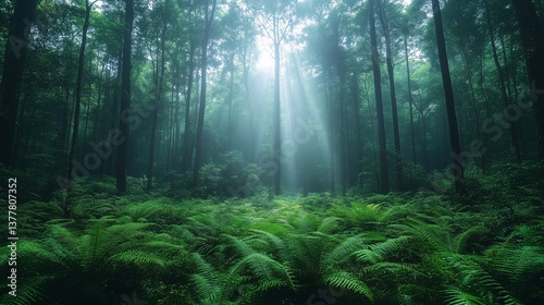 Obraz premium Sunlight Filtering Through Forest Trees