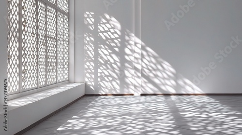 Obraz premium Sunlight Filtering Through Lattice Window Creating Intricate Shadows