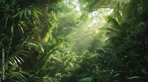 Fototapeta premium Sunlight Filtering Through Lush Jungle Canopy