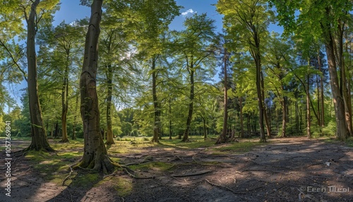 © boler, Fototapeta premium Sunlight filtering through the canopy of a lush deciduous forest
