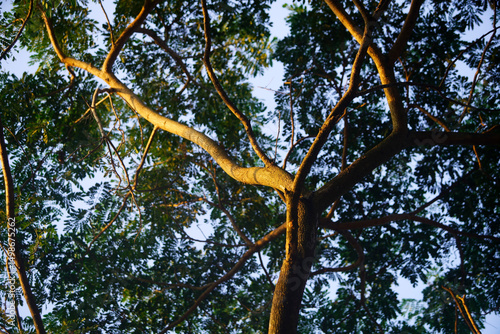 Fototapeta premium Sunlight Filtering Through Tree Branches in a Lush Green Canopy