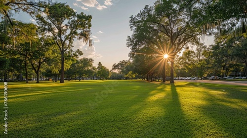 Obraz premium Sunlight filtering through tree branches in a peaceful park setting. Perfect...